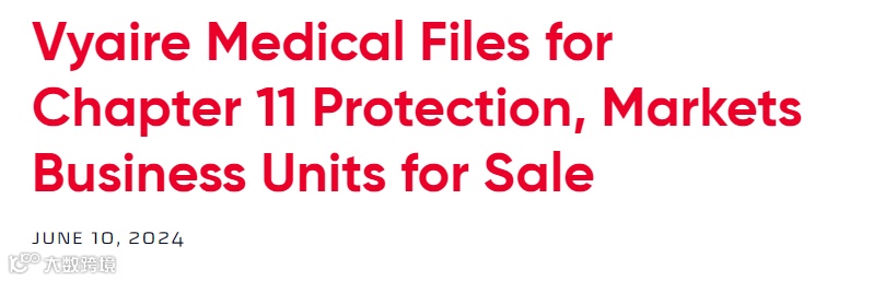 今年6月 Vyaire Medical 控股公司及其某些子公司(统称为Vyaire)已经在美国申请了第11章破产保护,目的是在寻找买家出售业务单元的同时,获得足够的资金以继续业务运营。