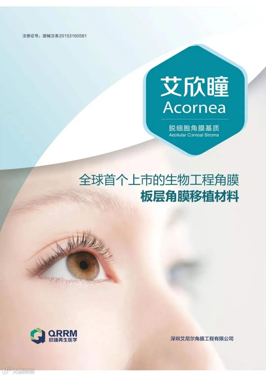 深圳艾尼尔角膜工程有限公司研发的“艾欣瞳”是全球首个人工生物角膜,取材于猪眼角膜,经病毒灭活与脱细胞等工艺制备而成,是猪角膜的细胞外基质,由前弹力层和部分基质层构成,主要成分为胶原蛋白。它保留了天然角膜的三维立体结构,降低了免疫原性,于2015年4月获批上市。