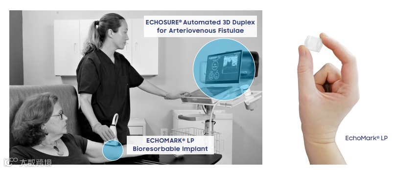 当与 EchoMark 标记物一起使用时,护士可以在没有超声培训的情况下,在透析诊所轻松监测患者,收集动静脉瘘的体积流量、直径和深度信息,以协助成熟度评估。