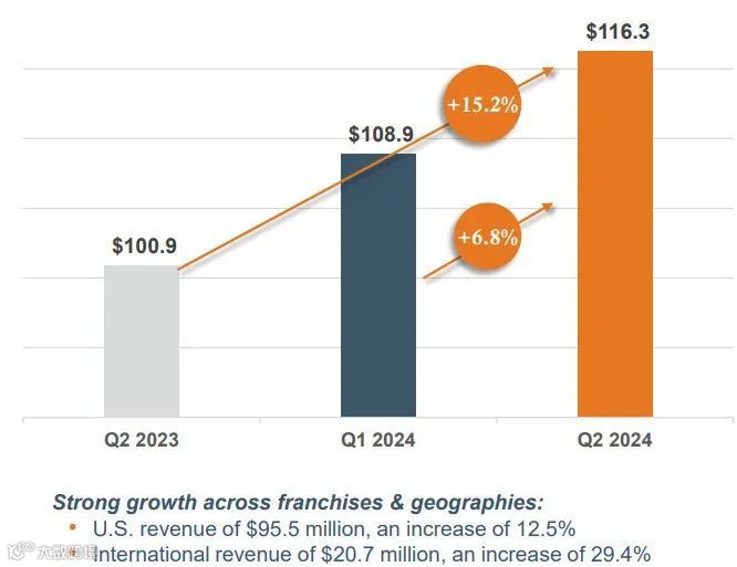 国际收入增长 470 万美元,即增长 29.4%,达到 2070 万美元,所有特许经营权和大多数主要市场都实现明显增长。 -