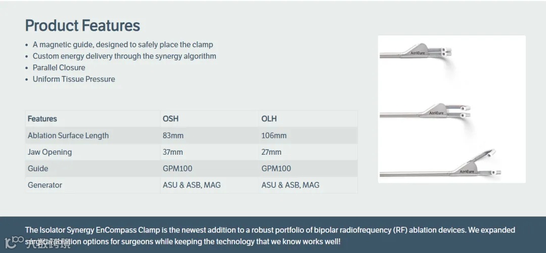 EnCompass 夹具用于心脏组织消融手术,包括在心脏直视手术中对左心房进行全面的心外膜消融。这是一种更简单、更快速的开胸手术心脏消融方法,使医生能够在短短几分钟内对左心房进行全面的心外膜消融。欧洲外科医生最近使用该设备完成了第一批病例的治疗。