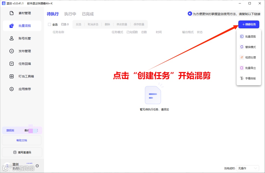↪ 批量混剪:单次操作生成多个视频,支持模板替换
