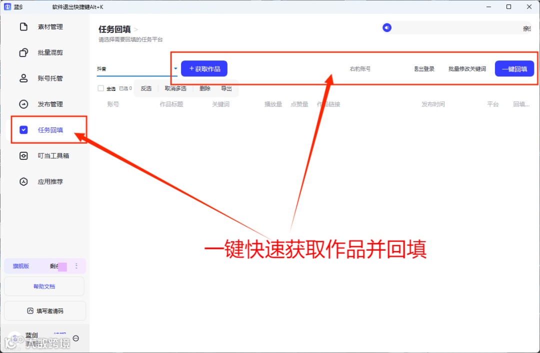 ↪ 任务回填:登录账号,一键获取账号作品并回填