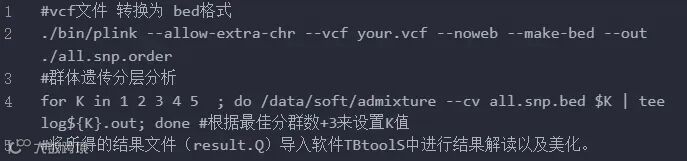 通过主成分分析与系统发育分析,我们已初步揭示了样本间的聚类关系与遗传分化格局。然而,这些方法尚不能回答一个更为本质的问题:这些个体究竟源自多少个潜在的祖先群体?为了追溯群体的混合历史并量化个体的祖先来源构成,我们需要借助群体分层分析。以