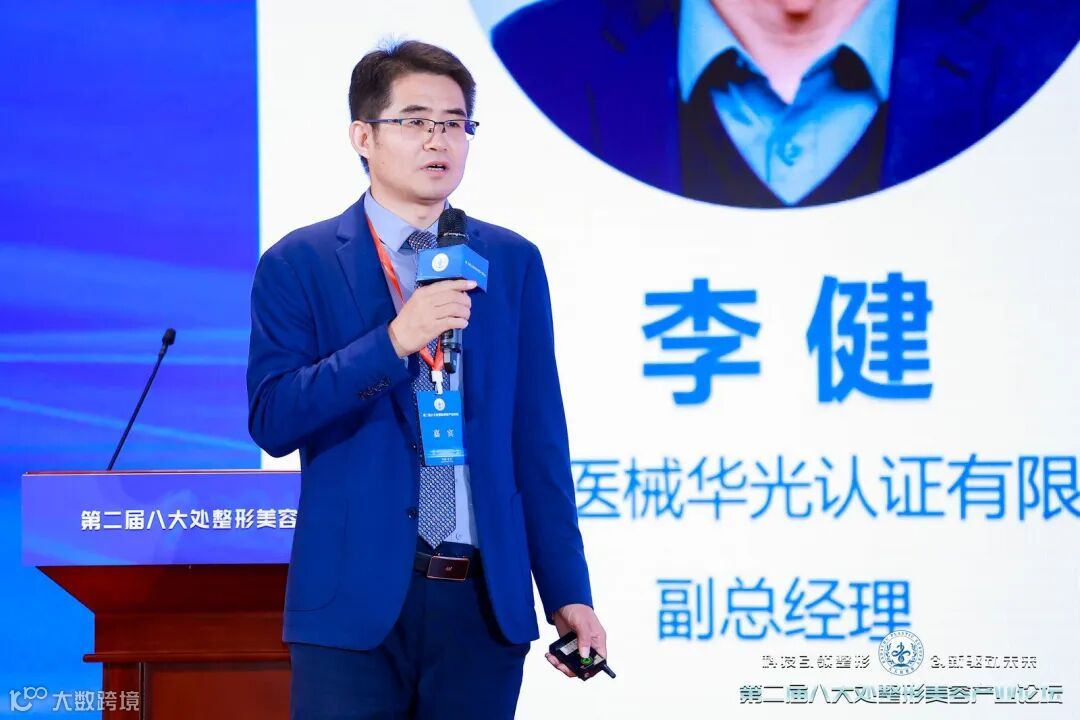 华光认证副总经理李健发表了题为《如何促进医美行业健康发展?-八大处标准的拟定与筹备》的演讲。他详细阐述了标准化对行业健康发展的重要性,介绍了八大处标准的制定过程和筹备工作,强调了通过规范化操作提升行业整体水平的必要性。