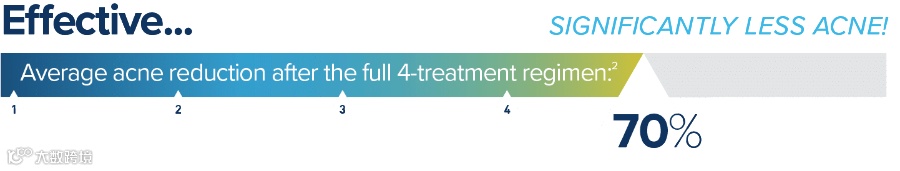 这种治疗机制已经通过美国 IRB 批准的多项临床试验验证,试验结果显示,在大约一个月间隔的 4 次治疗后,6 个月内炎症病变数量平均减少 70%,这一效果在所有皮肤类型和痤疮严重程度的患者中都有观察到。