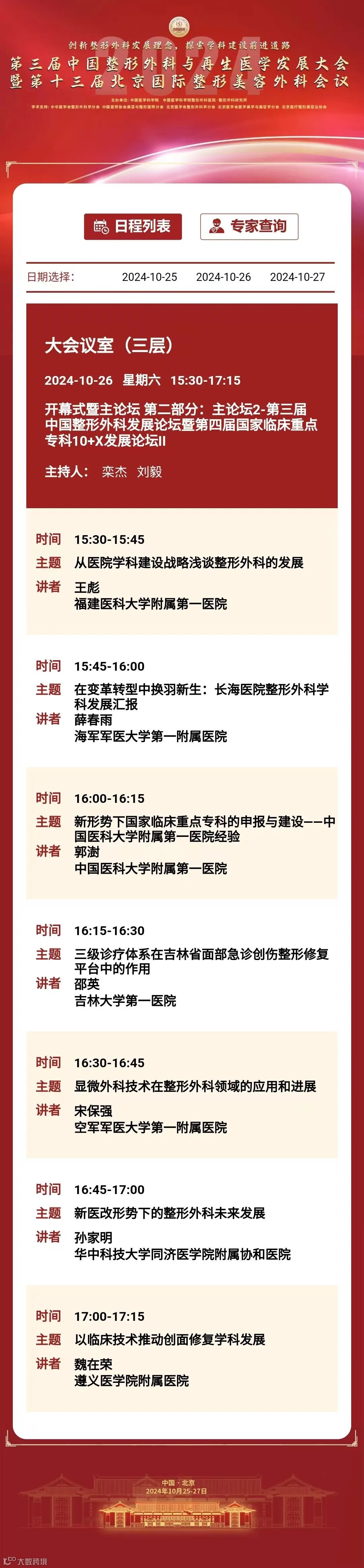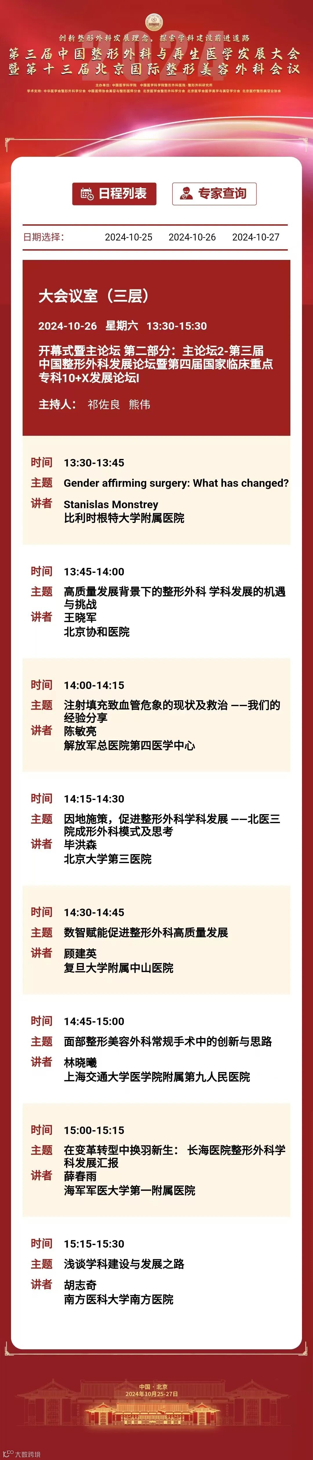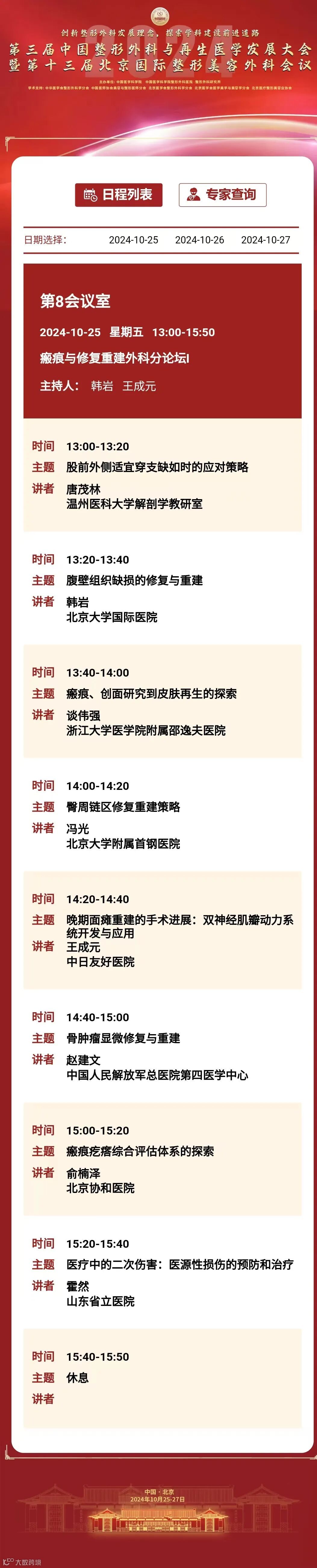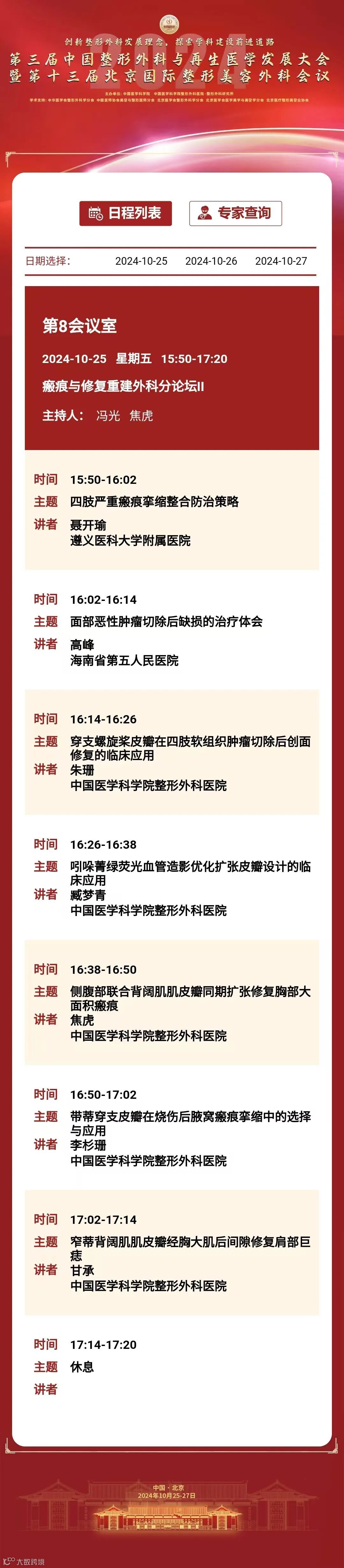 为推动我国整形外科健康、蓬勃发展,增进整形外科与相关学科交流与合作,中国医学科学院整形外科医院定于2024年10月25日至27日在