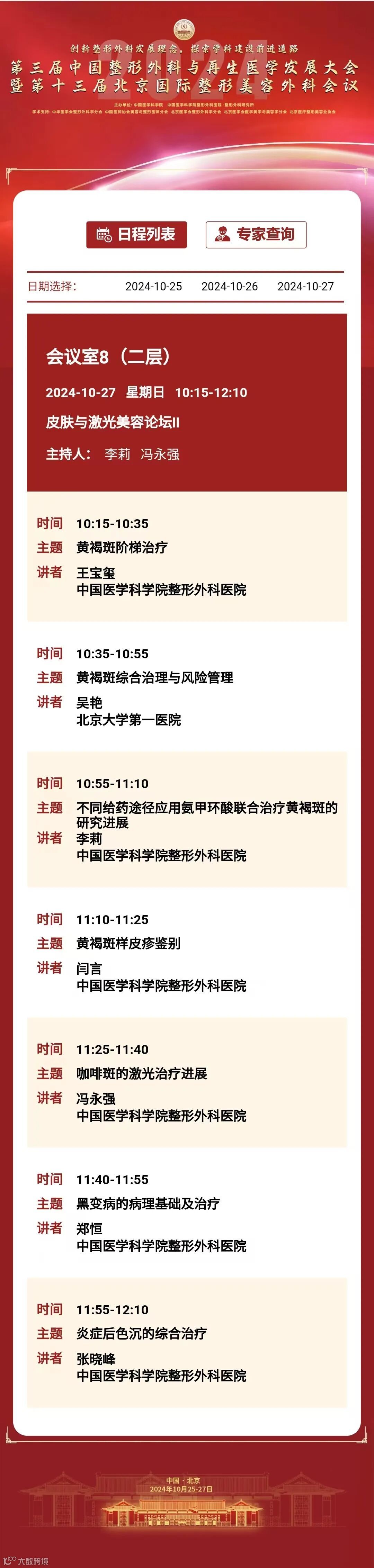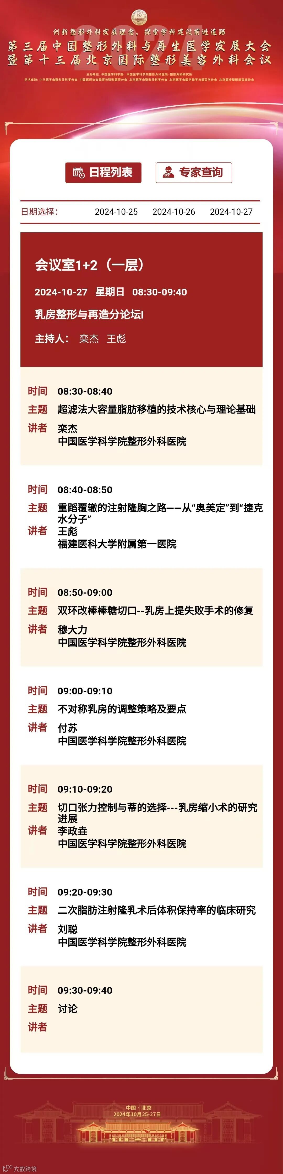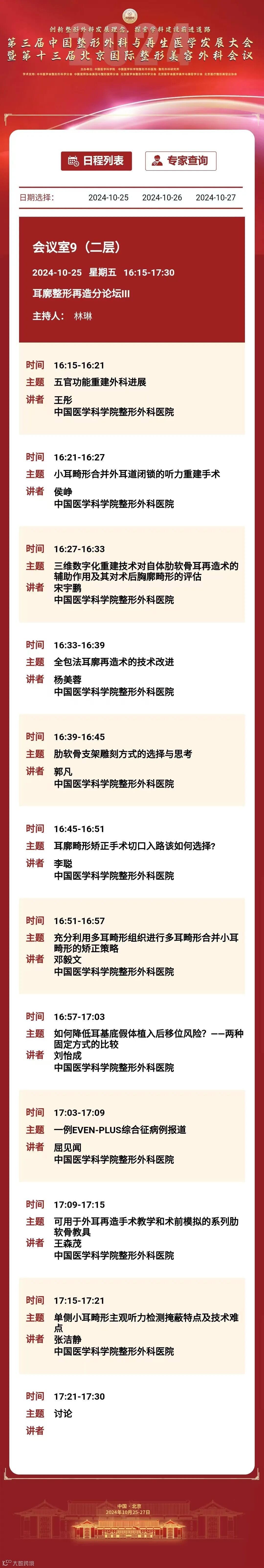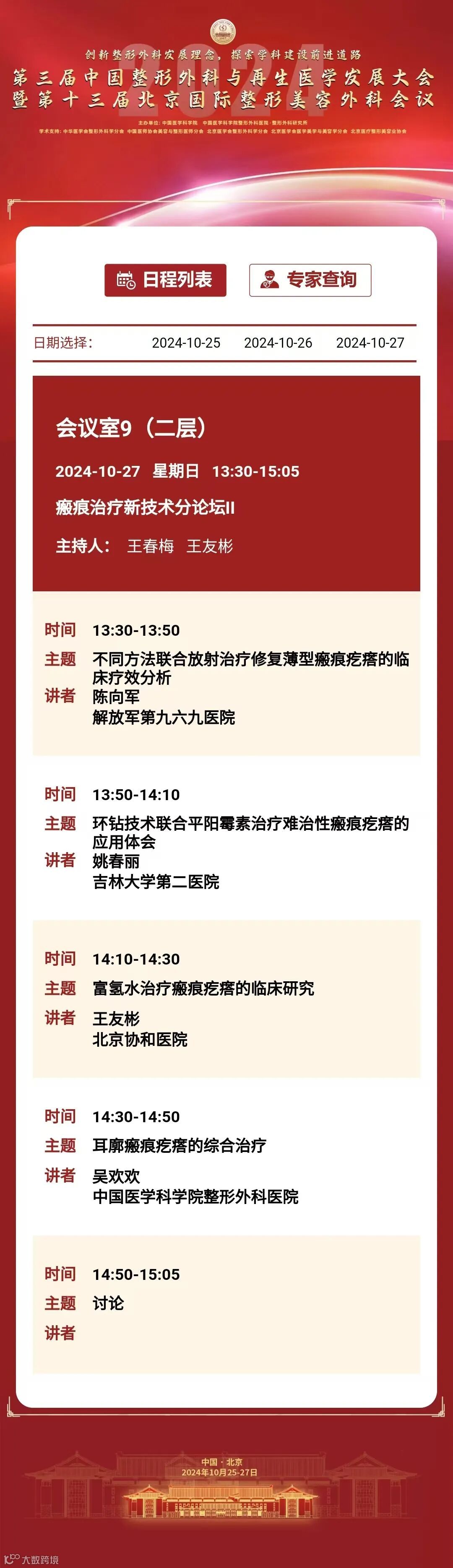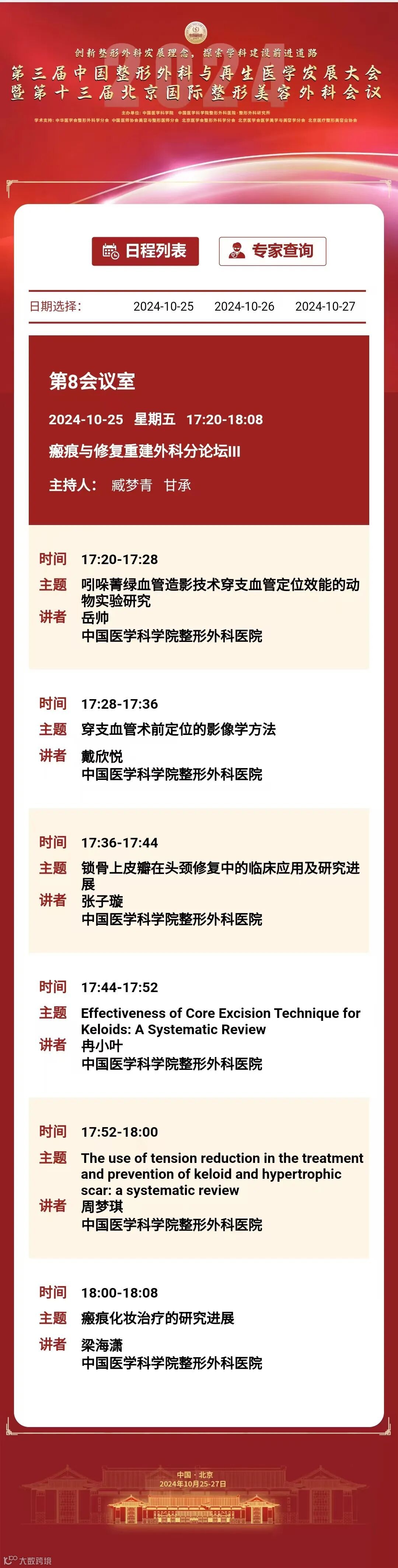 为推动我国整形外科健康、蓬勃发展,增进整形外科与相关学科交流与合作,中国医学科学院整形外科医院定于2024年10月25日至27日在