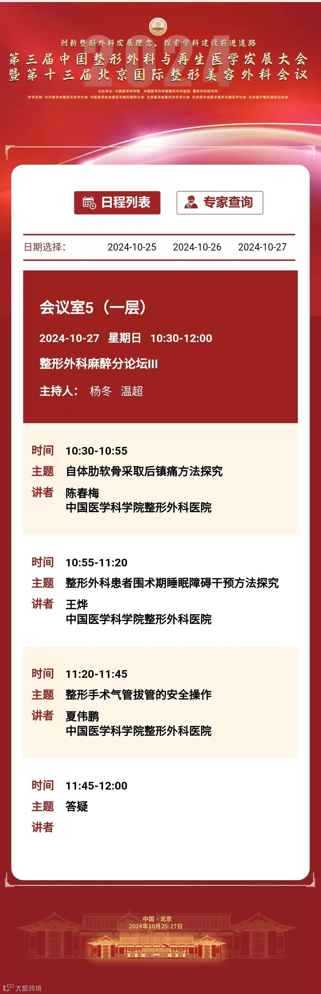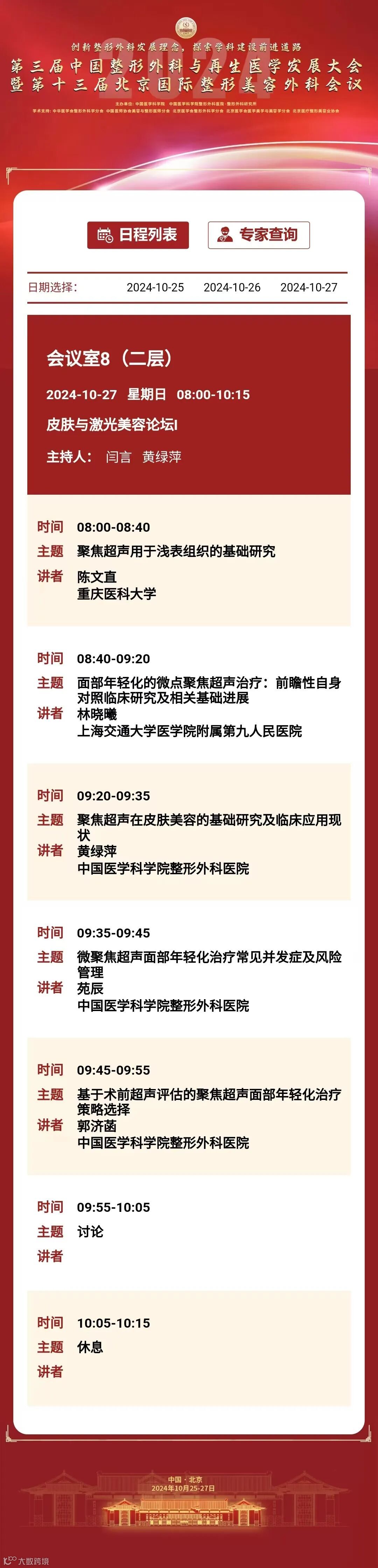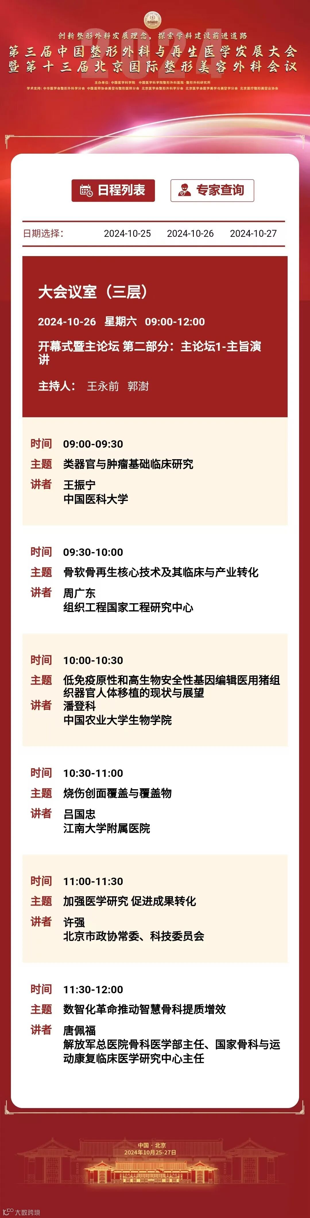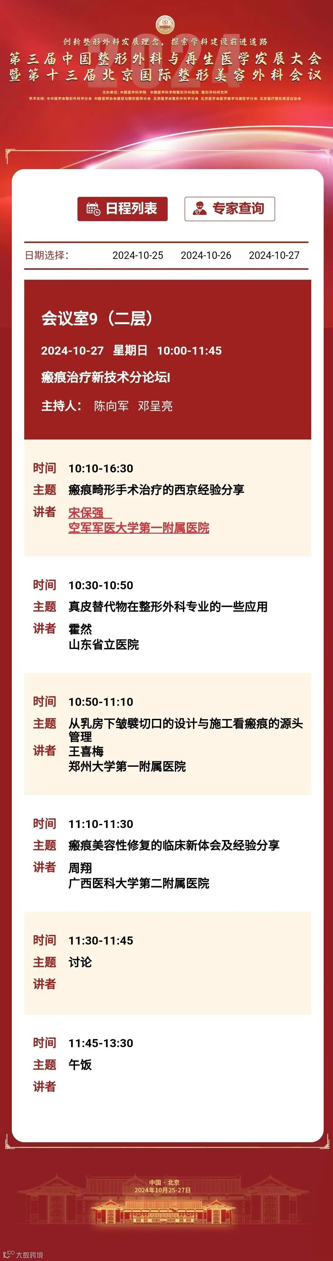 为推动我国整形外科健康、蓬勃发展,增进整形外科与相关学科交流与合作,中国医学科学院整形外科医院定于2024年10月25日至27日在