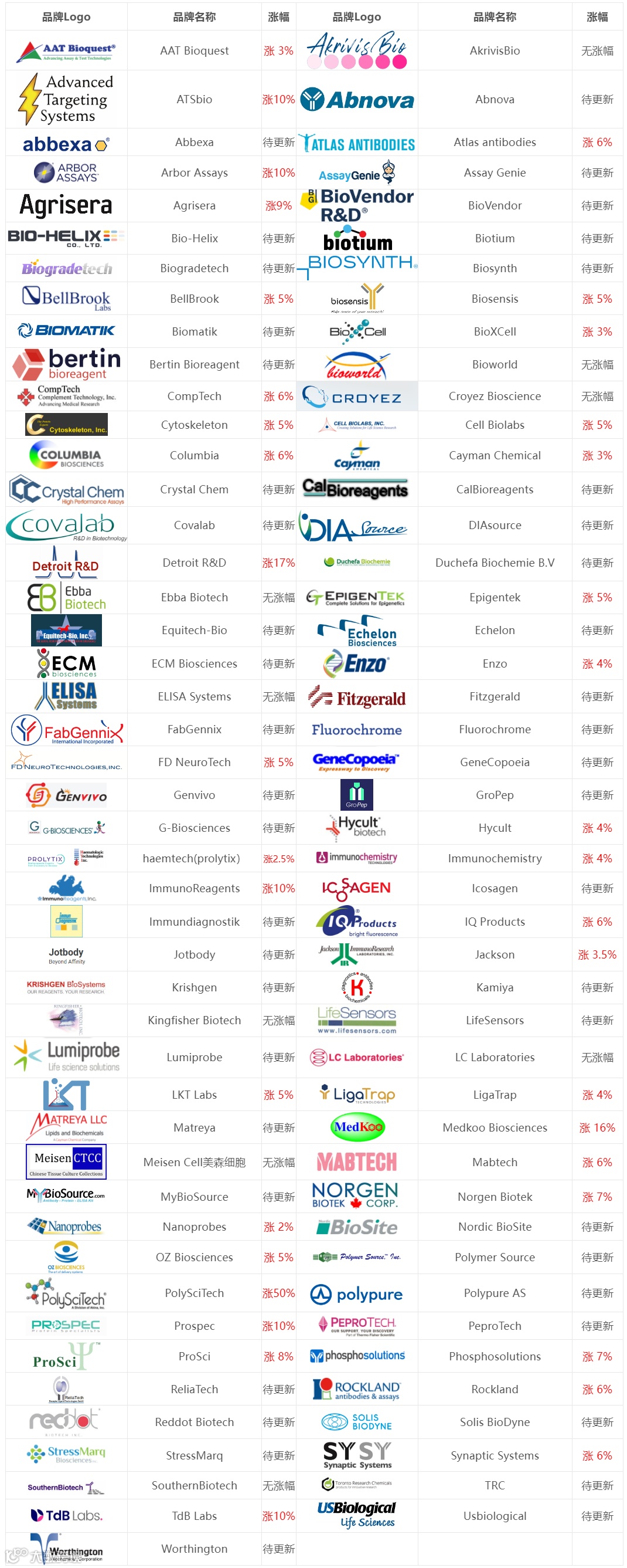 当前收到价格变动的品牌如下图表,如有新的价格信息,将在下方表格内持续更新: