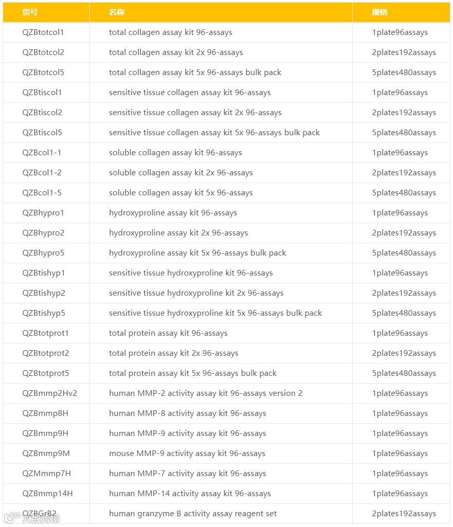 QuickZyme Biosciences 总部位于荷兰,在基质相关蛋白质、酶和分析领域为研究界提供创新的独特产品。其科学团队长期从事纤维蛋白溶解,蛋白凝集,蛋白酶,细胞外基质等方面的研究,在细胞基质的胶原蛋白方面颇具研究经验。QuickZyme致力于提供基质相关的蛋白,酶及相关实验方面的产品,尤其是胶原蛋白测定等特色产品。