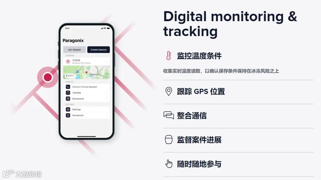 通过蓝牙与智能设备连接,在Paragonix应用程序内提供实时监控和数据报告。