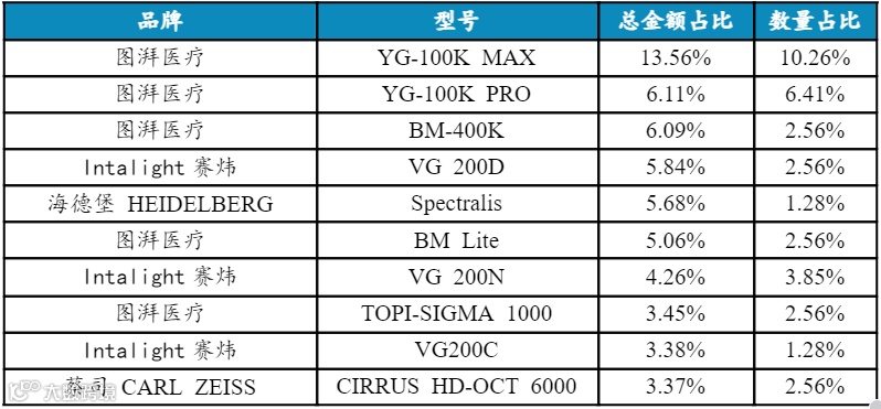 图表2-2 2024年1-4月眼科光学相干断层扫描仪主要品牌型号中标情况