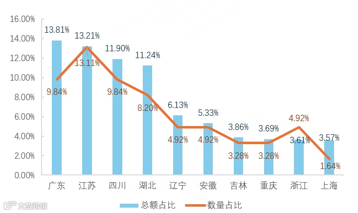图表2-3 2024年1-4月各省(自治区、直辖市)光学相干断层扫描仪中标占比情况(Top10)