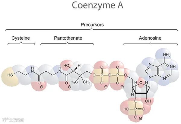 辅酶A(CoA,Coenzyme A)是体内70多种酶反应通路的辅助因子,包括糖类的分解,脂肪酸的氧化,氨基酸的分解,丙酮酸的降解,激发三羧酸循环,提供机体生命所需90%的能量,在所有生物体的许多合成和降解代谢途径中发挥重要作用。在真核生物中,CoA及其衍生物还参与膜运输和信号转导。
