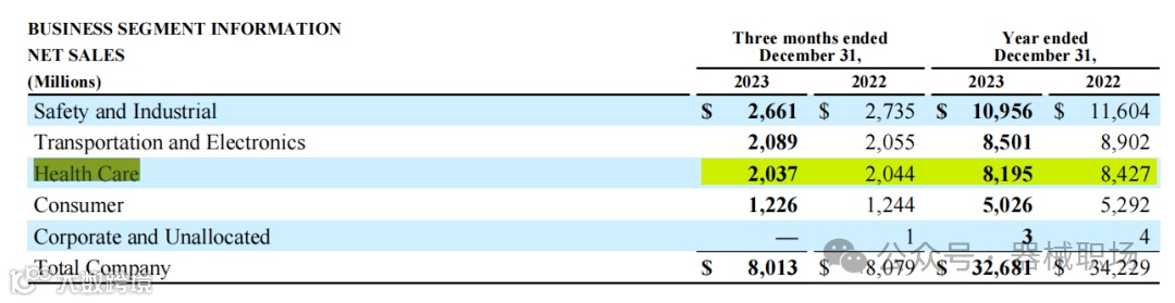 2022年7月,3M宣布计划在2023年底前剥离其医疗保健业务为一个独立的公司,成立 3M Health Care公司;同时,公司还会剥离其食品安全业务,该业务将与 Neogen 合并。 -