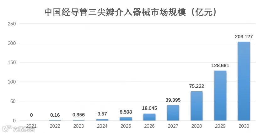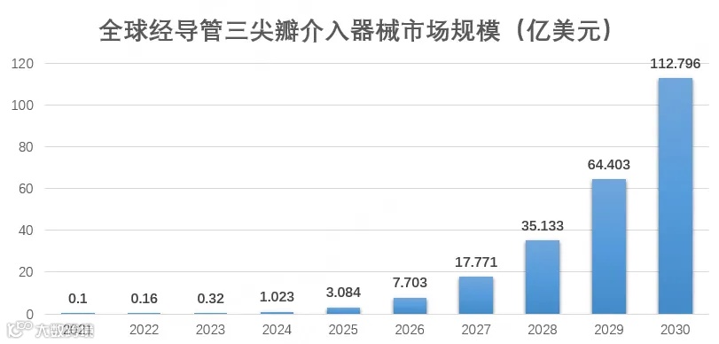 市场规模方面,2021-2030年,全球三尖瓣介入器械市场规模将从0.1亿美元增长至112.8亿美元,CAGR达118.35%;2023年-2030年,中国三尖瓣介入器械整体市场将从0.9亿元增长至203.1亿元,CAGR达118.44%;可以看出,国内三尖瓣介入器械市场增速与全球增速保持较为一致,均将处于高速增长状态。