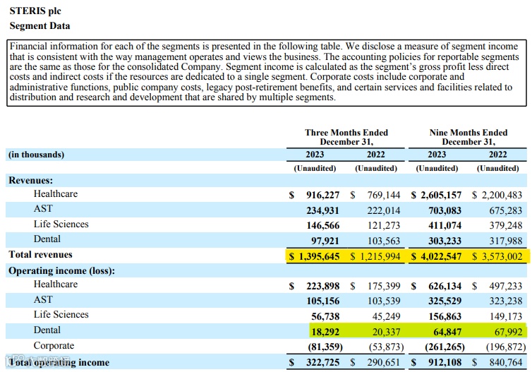 但是,牙科业务收入下降 5%,由1.036 亿美元降至9790万美元。