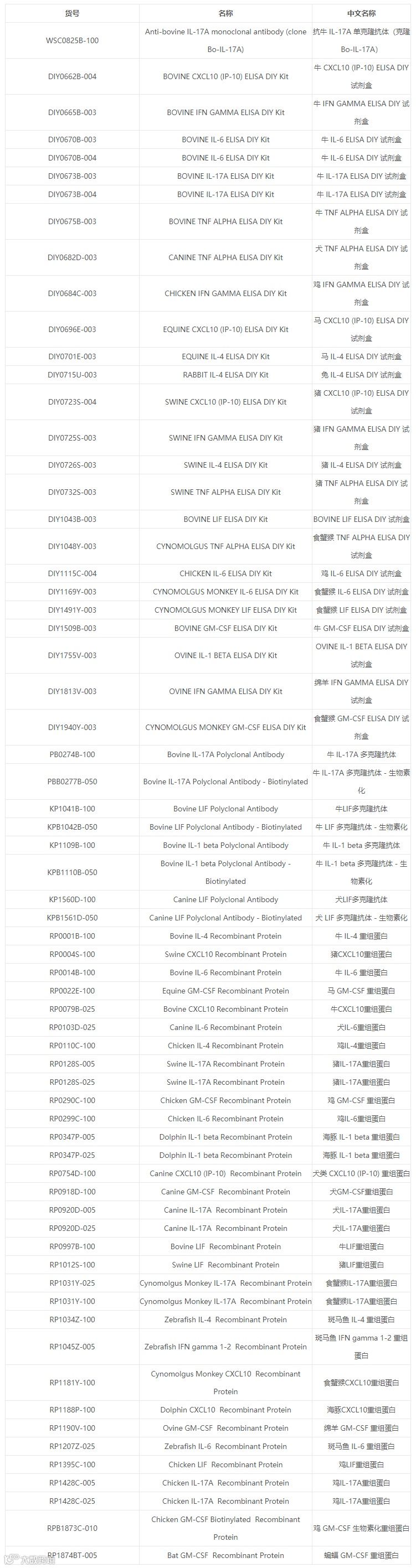 Kingfisher 主要产品线主要针对,各种兽医学动物模型,分为如下3类,100% 现货: