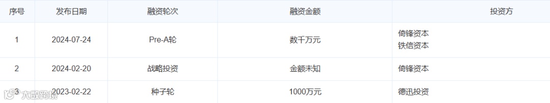 截至发稿日,查询公司融资历程如下: