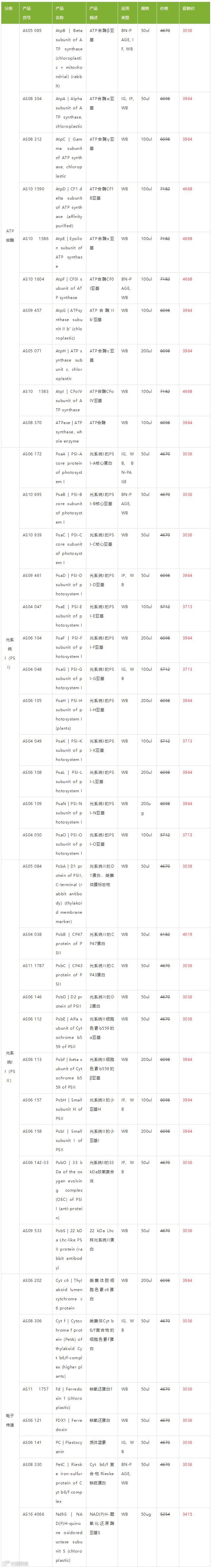 品目:全线光合作用抗体产品线(322个指定货号抗体产品)
