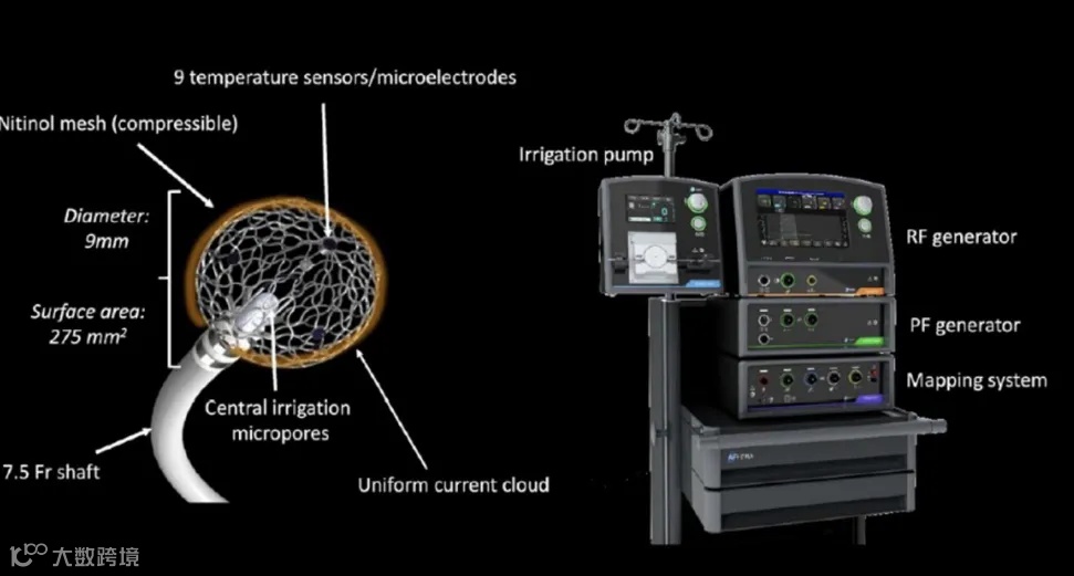 Sphere-9晶格消融导管搭配HexaGen™消融仪和盐水灌注泵使用,兼具射频消融和脉冲场消融,这种双发生器的设计允许其在射频能量和脉冲场能量之间切换,且无需移动导管和连接线,能够满足不同部位的消融需求。