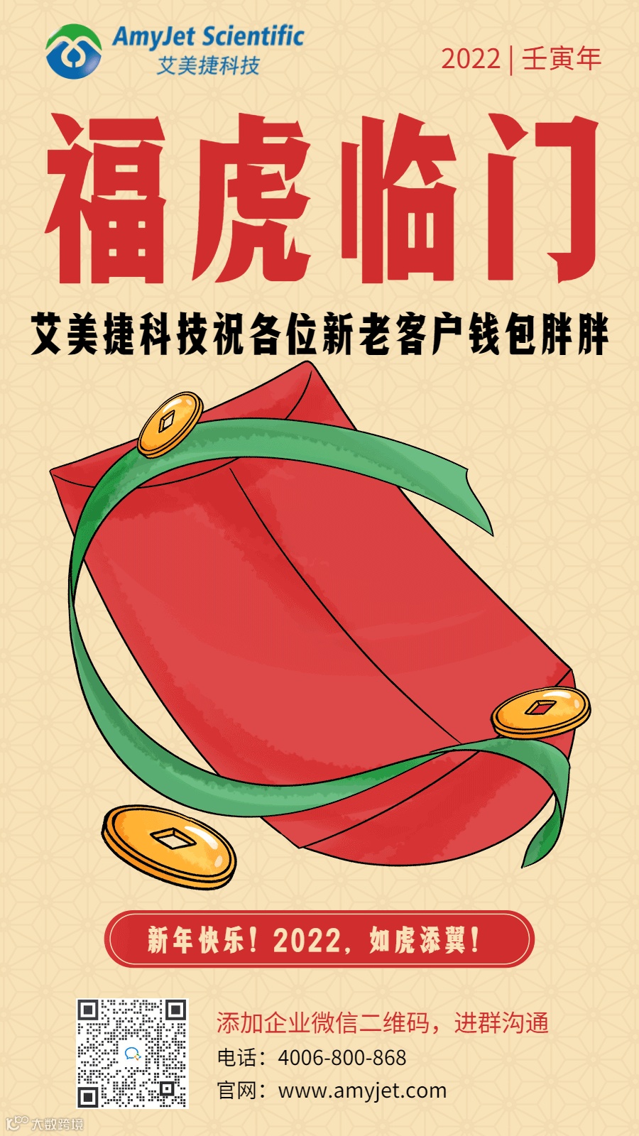 虎年有虎福,老虎送福到。值此新春佳节之际,艾美捷给大家拜年啦: