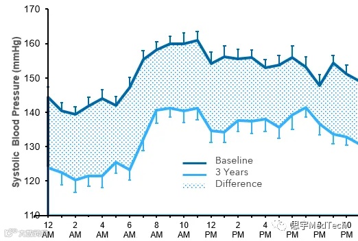 Symplicity具有全天候降压效果,24小时动态血压都得到控制,并且不受患者行为的影响。在夜间和清晨期间,通常心血管风险最高时,接受手术的患者血压也能持续控制。Symplicity Spyral™肾去神经支配术安全性良好,三年内无任何设备或手术安全事件,没有对患者的肾功能产生任何不良影响,可以安全有效地降低高血压患者的血压。