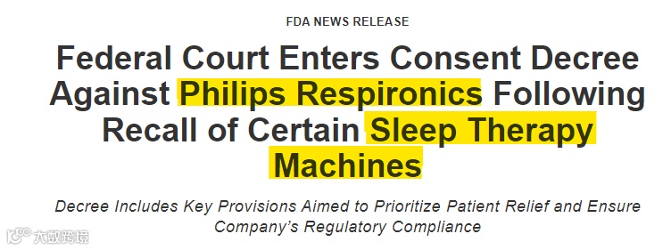 2024年4月11日,飞利浦医疗(NYSE:PHG)宣布,与 FDA、美国司法部 (DOJ) 达成最终协议,协议要求在满足多项安全性要求之前,飞利浦公司将被禁止在美国工厂恢复睡眠呼吸机的生产。
