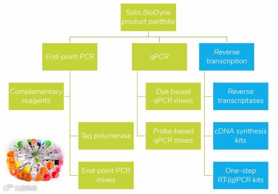 除了上述的高效稳健的HRM分析预混Mix产品,Solis BioDyne为客户提供终点PCR(end-point PCR),qPCR(real-time PCR),反转录PCR(Reverse transcription),以及其它PCR所需的配套试剂。产品线纵览图如下: