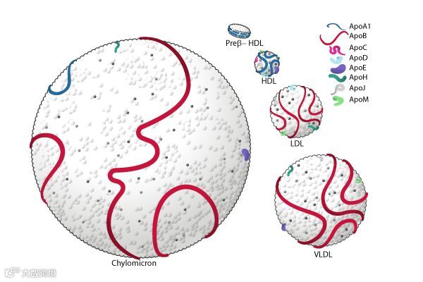 载脂蛋白B作为许多脂蛋白的主要组织蛋白,在脂蛋白转运中起着尤为重要的作用。载脂蛋白E(apoE)通过其与脂蛋白受体(包括低密度脂蛋白(LDL)受体)的高亲和力相互作用在胆固醇的转运和摄取中起重要作用。ApoE是中枢神经系统中的主要脂蛋白,并且与痴呆和阿尔茨海默病有关。