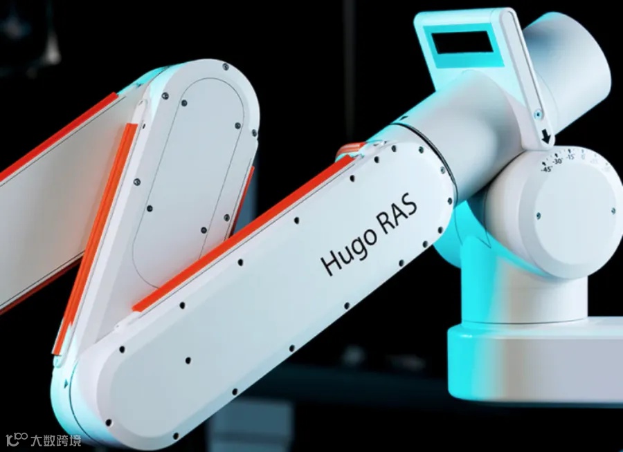 Hugo是美敦力一款软组织手术机器人,其采用模块化设计,由带有3D‑HD显示屏的开放式手术控制台、四臂推车和一个系统塔组成。
