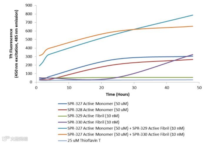 一旦结合,硫黄素T的发射光谱就会发生红移 ,并且荧光强度会增强,这是一个很好的用来检测纤维原形成的测试。