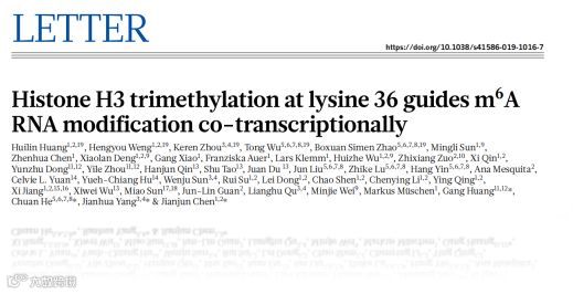 《Histone H3 trimethylation at lysine 36 guides m6A RNA modification co-transcriptionally》Nature (2019)