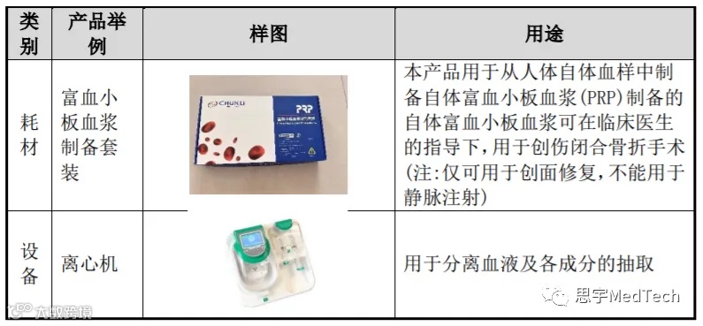 公司PRP产品主要用于从全血中分离提取出高浓度的血小板。主要部件包括富血 小板血浆制备套装、离心机、台车。