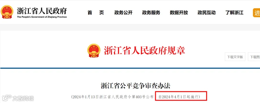近日,浙江省人民政府网发布了《浙江省公平竞争审查办法》(以下简称《办法》),自4月1日起正式施行。