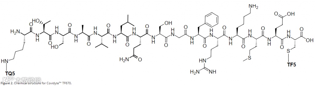 冠状病毒蛋白酶的活性可以通过TF5的荧光强度有效监测。Covidyte™TF670是一款功能强大的高通量筛选工具,可用于搜索冠状病毒蛋白酶的抑制剂。TQ5-TF5对已被证明对开发FRET蛋白酶底物极为有效。