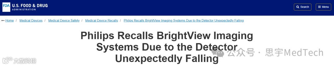 2024年2月15日,美国食品药品监督管理局(FDA)宣布,飞利浦公司主动召回其三款医学成像设备——BrightView、BrightView X和BrightView XCT。此次召回被定为最严重的I级召回,因为使用这些设备可能会导致严重伤害甚至死亡。