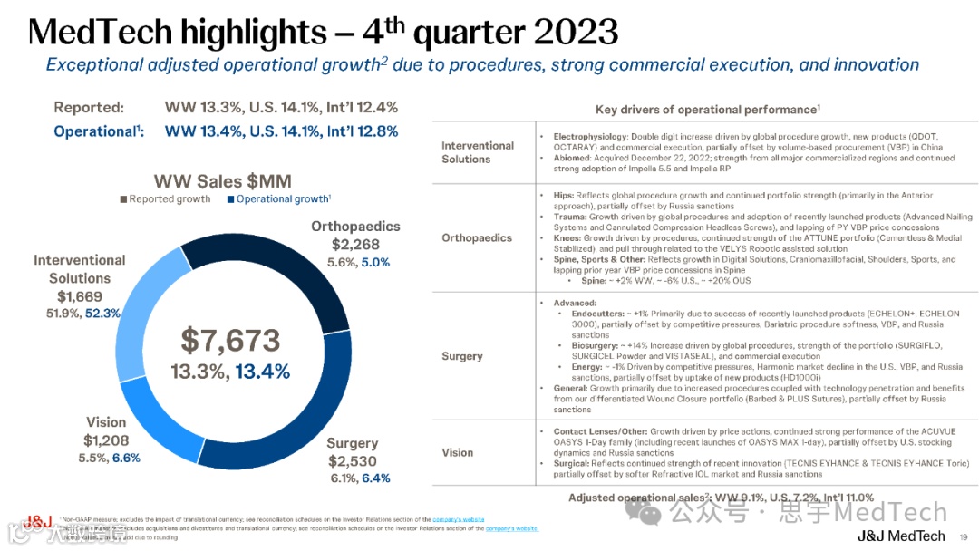 骨科销售额:24亿美元(增长11%) -