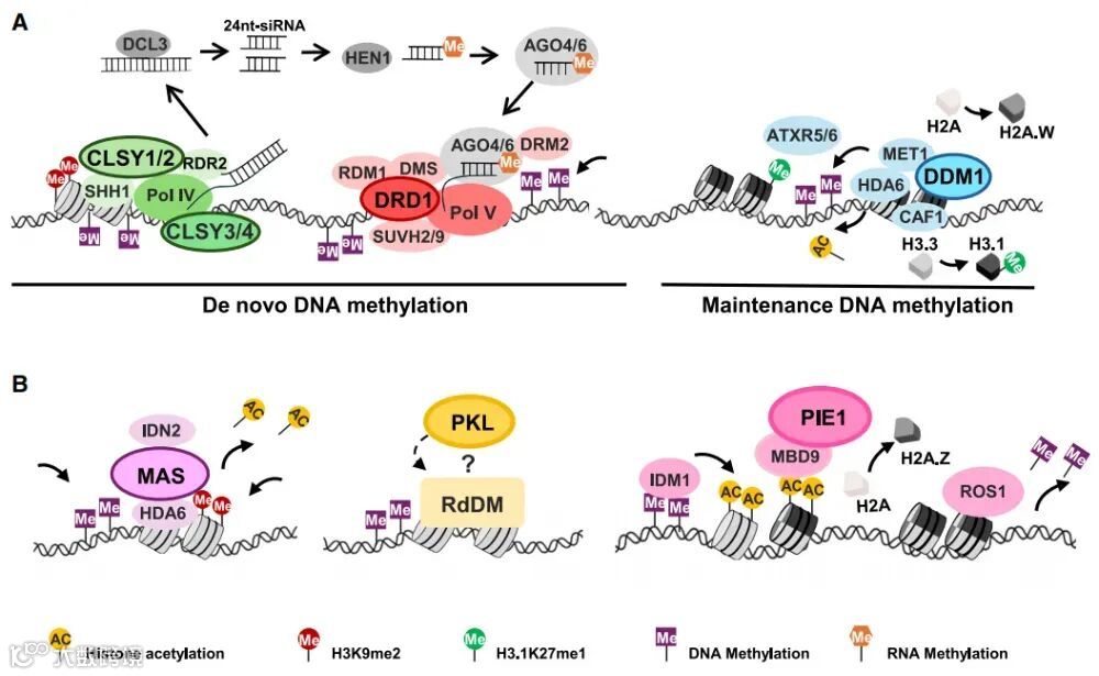 核小体编辑(包括组蛋白变体的掺入或排除,尤其是H2A变体H2A.Z)主要由INO80和SWR1亚家族执行。值得注意的是,拟南芥的ISWI重塑因子CHR11和CHR17可作为SWR1复合体的组成部分,参与与H2A.Z沉积相伴的核小体定位,凸显了一种将核小体定位与H2A.Z沉积耦联的植物特异性机制。