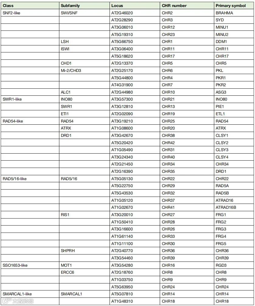 表1:拟南芥中的SNF2家族染色质重塑因子