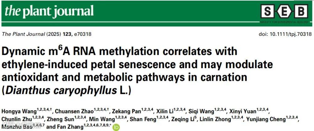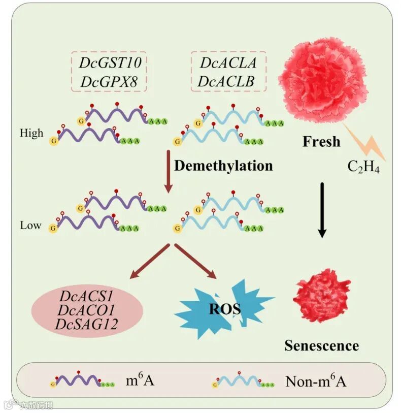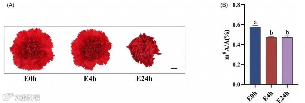 1. 在乙烯诱导的康乃馨花衰老过程中,mRNA m6A水平呈现出动态变化