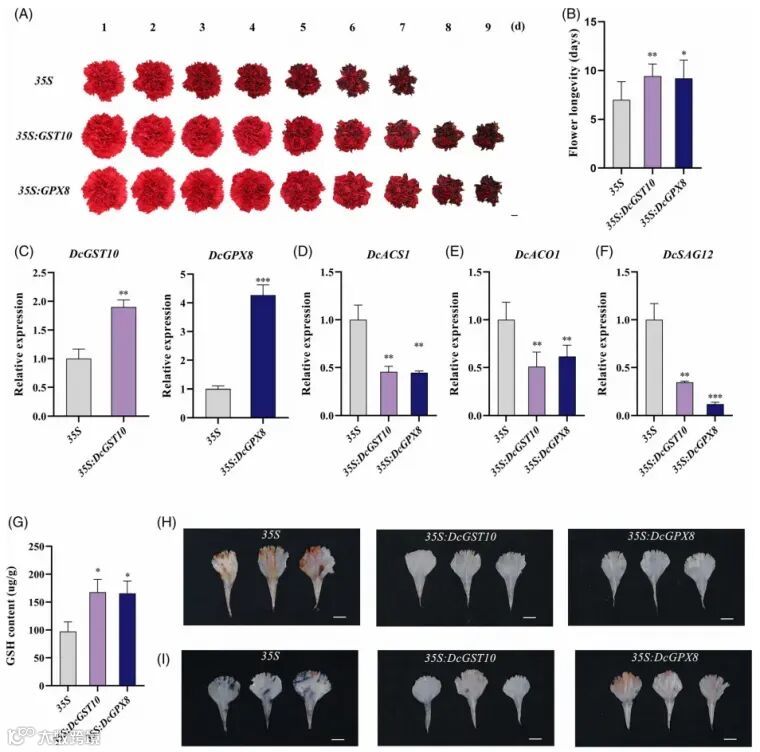 6. DcGST10和DcGPX8通过氧化应激和乙烯生物合成促进康乃馨花衰老