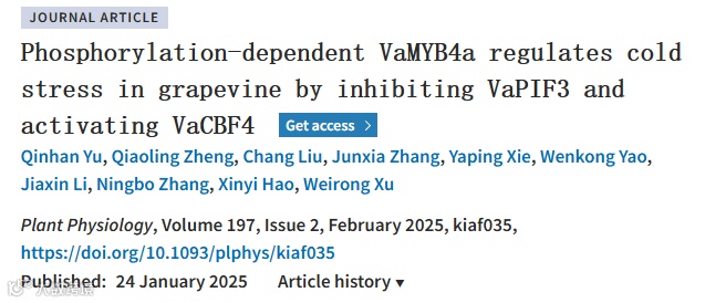 宁夏大学徐伟荣团队在《Plant Physiology》发表题为:Phosphorylation-dependent VaMYB4a regulates cold stress in grapevine by inhibiting VaPIF3 and activating VaCBF4的文章,此研究利用ChIP-seq、RNA-seq、亚细胞定位、酵母单杂、COIP等技术方法揭示了VaMYB4a通过抑制VaPIF3和激活VaCBF4来增强葡萄的抗寒性,为植物抗寒研究提供了新的见解。