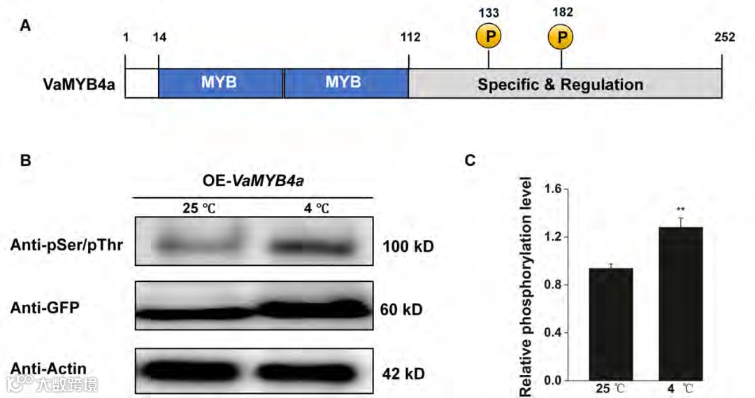 1. 低温诱导VaMYB4a磷酸化增强其在葡萄冷胁迫中的作用