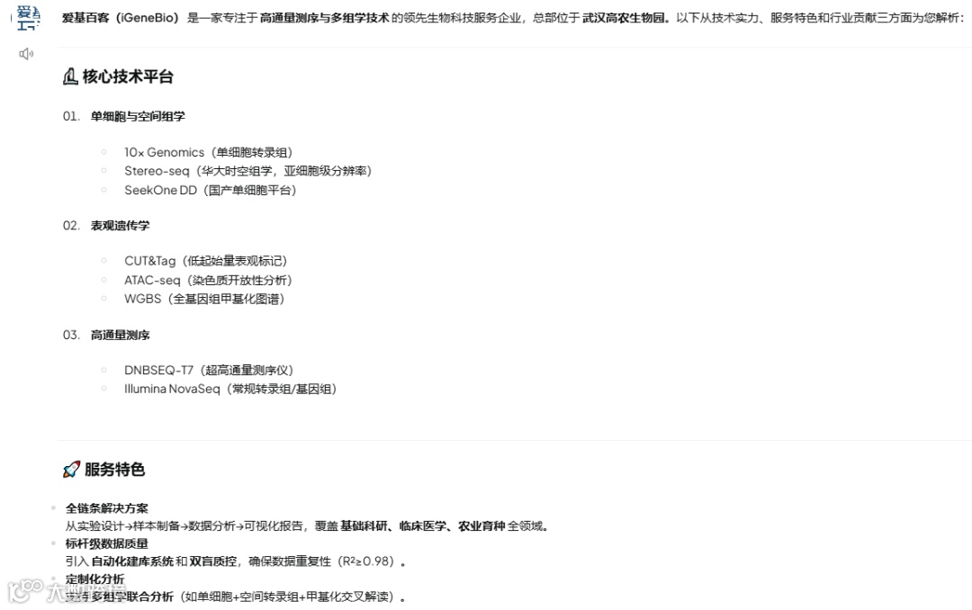武汉爱基百客生物科技有限公司(简称爱基百客)是一家专注于表观组学、单细胞时空组学和高通量测序分析服务的新型生物科技企业。公司办公面积逾3000m2,员工已达到百余人,业务覆盖全国,核心团队来自国内知名高校和基因测序公司。公司先后引入ChIP、ATAC-seq、CUT&Tag、单细胞(进口、国产多平台)、DNBSEQ-T7和STOmics时空组学等实验平台,同时配备MGISP-960和AlphaTool等自动化设备。