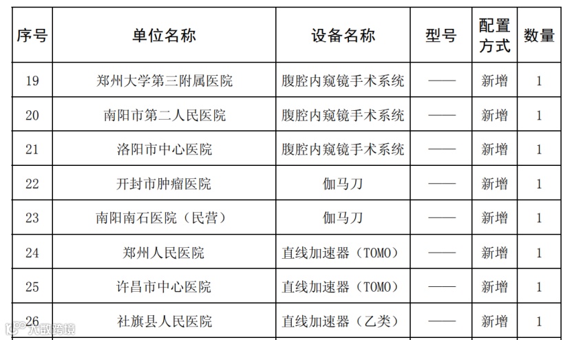 同月,河南卫健委公布了2023年第四季度乙类大型医用设备配置许可情况。