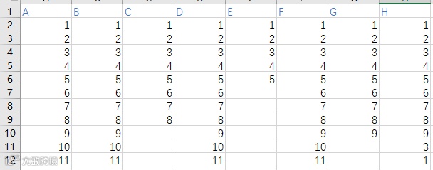 输入文件为各元素集合组成的表格。其中每一列代表一个集合,第一行表示集合的名称。如下表所示: