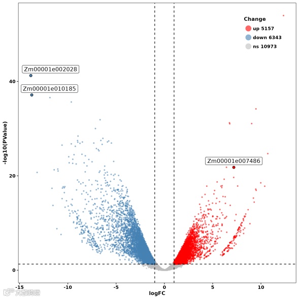通过观察火山图,我们可以快速筛选出不同样本具有显著差异表达的基因,从而进一步进行功能注释、生物通路分析等深入研究。