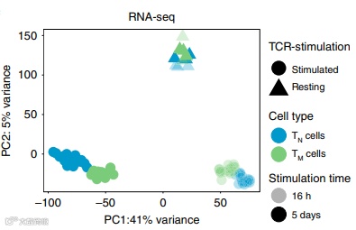 图:PCA图展示了TN和TM细胞的整个转录组[2]